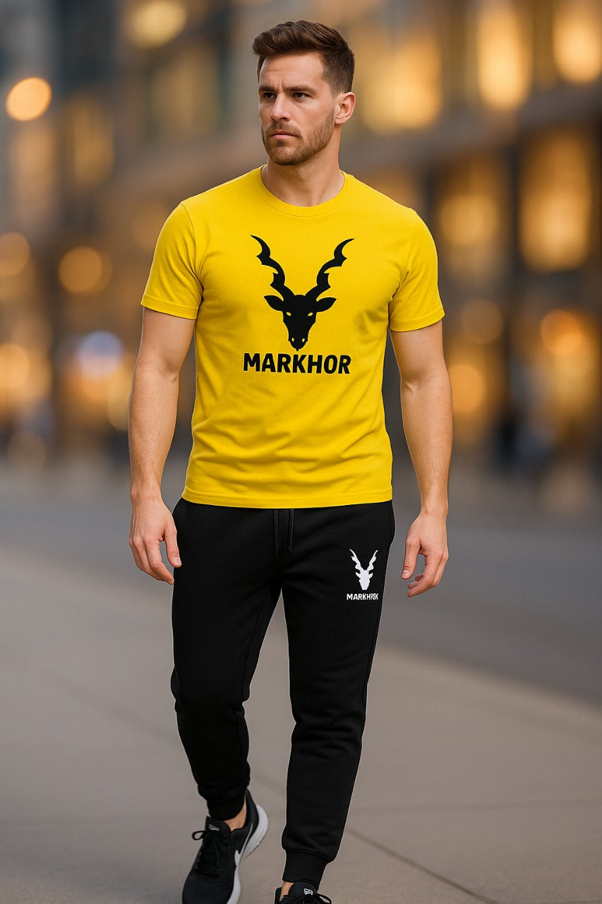 Upgrade your casual look with our Markhor Printed T-Shirt & Jogger Set – the perfect blend of comfort, style, and functionality. Designed for everyday wear, workouts, or lounging, this premium combo offers a fresh streetwear vibe with the iconic Markhor print.